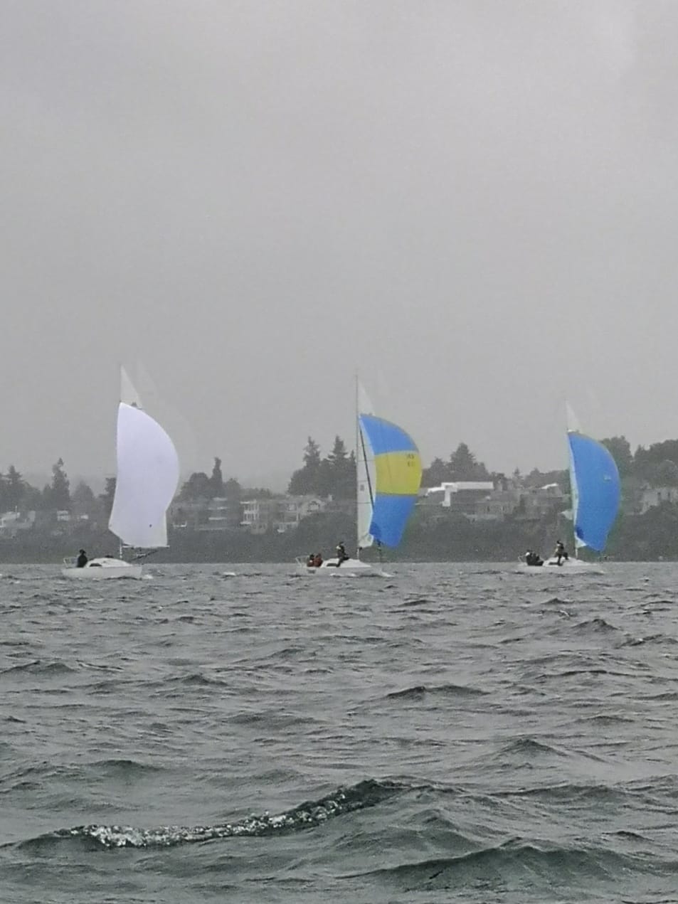 Sunday morning dawned with a wind warning in effect and the threat of heavy rain. After a short delay while the Race Committee evaluated the forecast, the race got underway in a brisk Easterly.