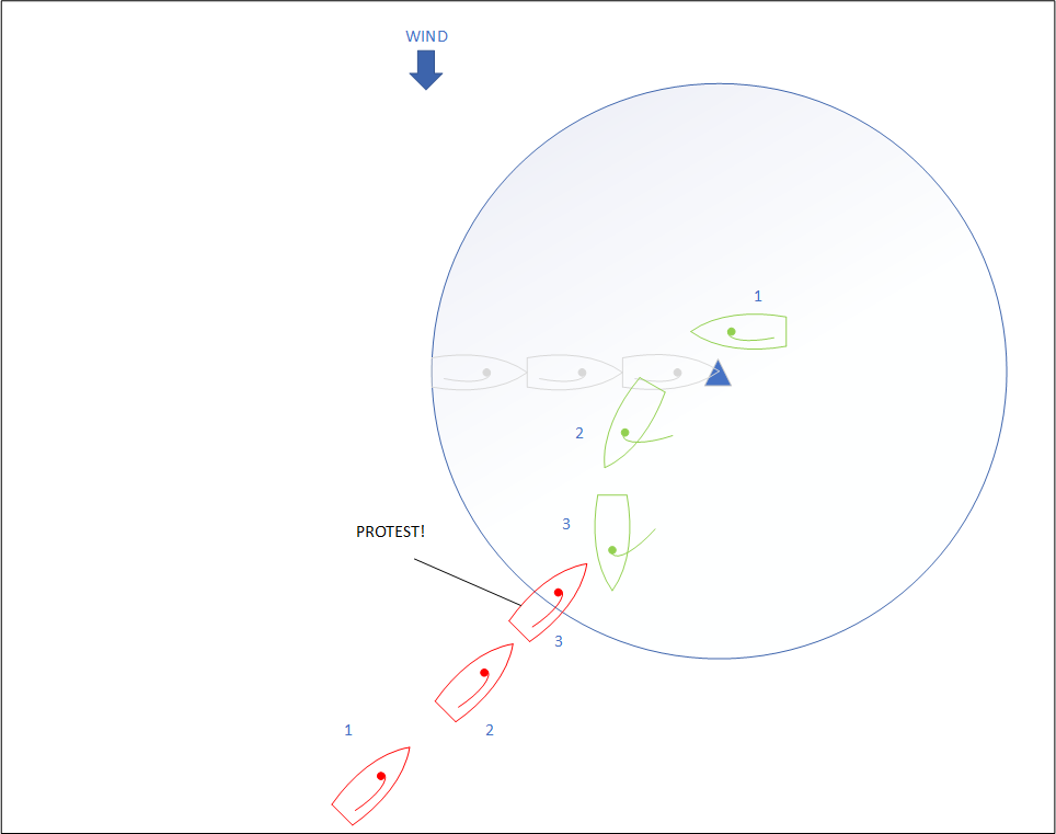 - if you sail past far enough before tacking there’s no foul under Rule 13 (While Tacking, aka Tacking Too Close). Make sure you sail far enough past before starting the tack!